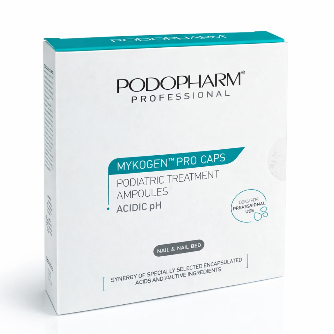 MYKOGEN™ Pro Caps Kuracja Podologiczna w Ampułkach to specjalistyczny preparat o kwaśnym pH, opracowany z myślą o profesjonalnym zastosowaniu w gabinecie podologicznym. Ampułka zawiera kompozycję kapsułkowanych kwasów o stopniowym uwalnianiu, dzięki czemu działa skutecznie i przedłużenie w czasie.