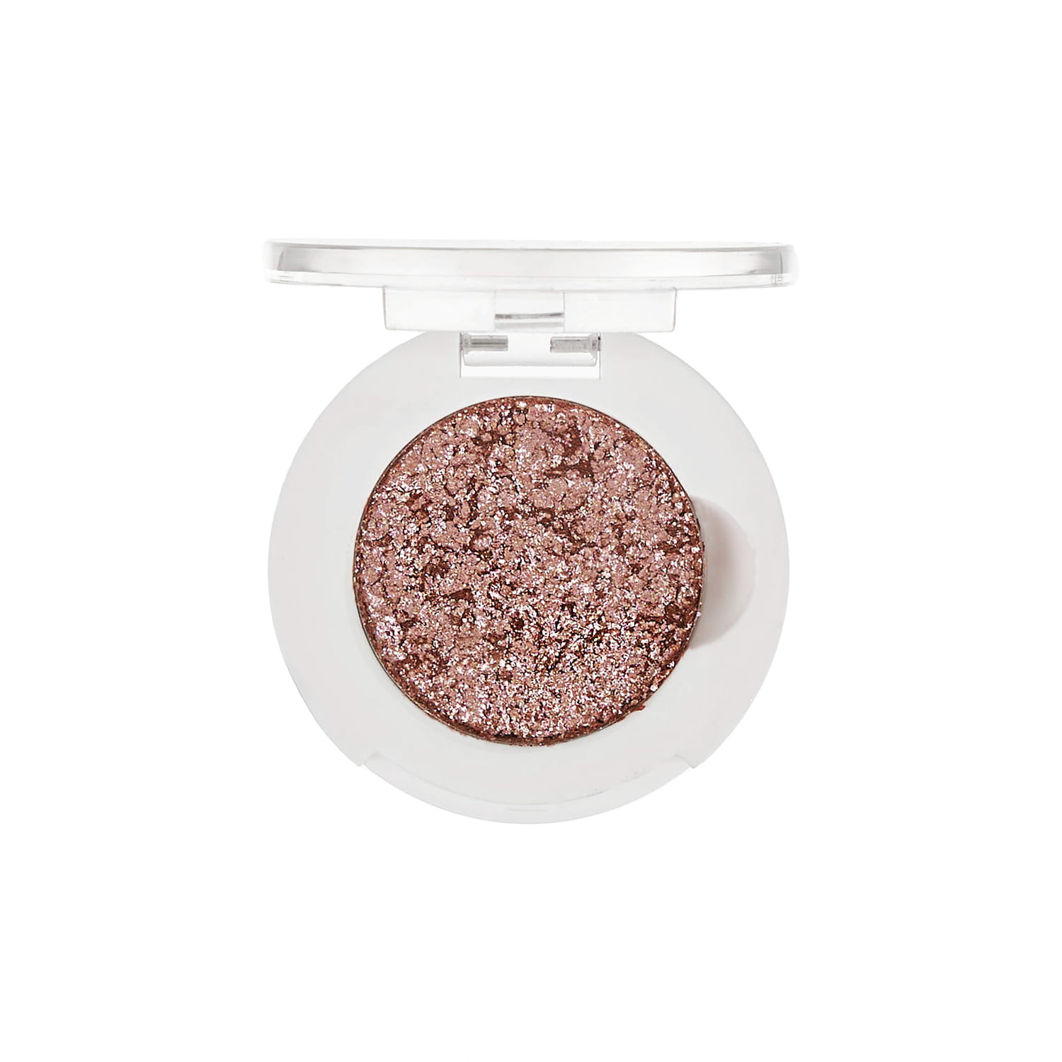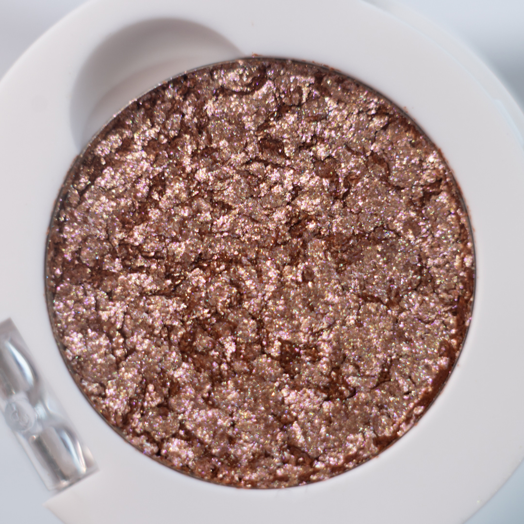Brokatowy, prasowany pigment w kolorze chłodnego różu wzbogacony iskrzącymi się drobinkami złota.
