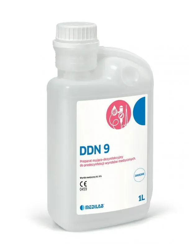 DDN9 preparat do mycia i dezynfekcji sprzętów medycznych. Zaletą płynu jest na pewno jego wydajność.