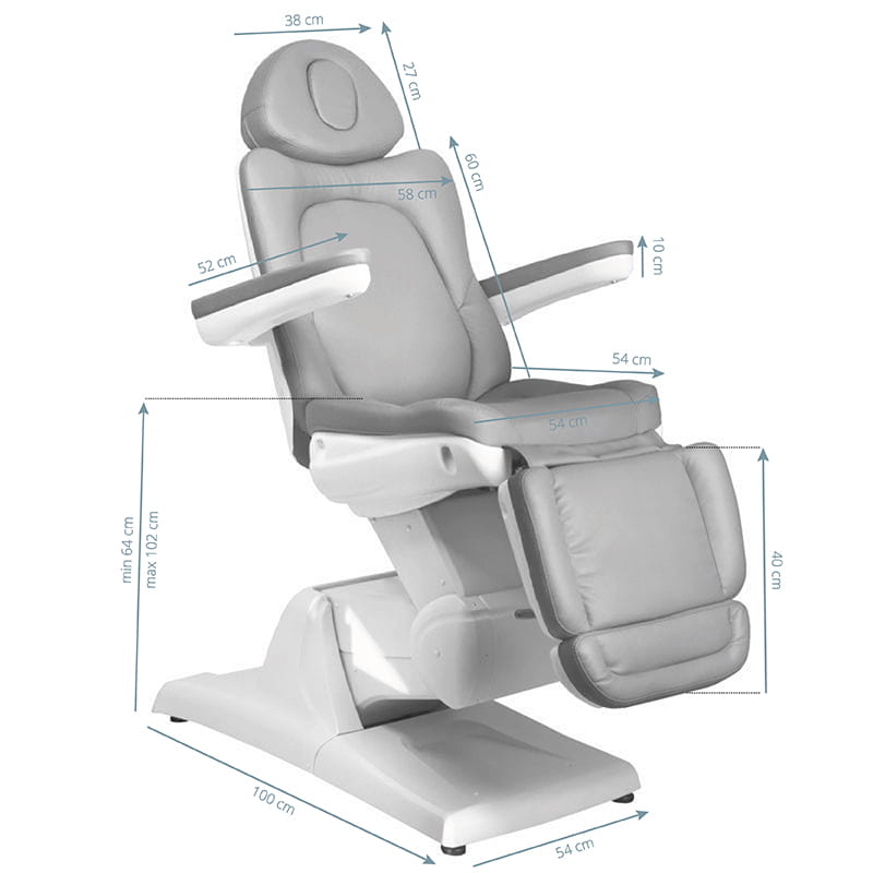 Nowoczesny fotel kosmetyczny regulowny elektrycznie, zapewniający komfort podczas zabiegu nie tylko pacjentom, ale i osobom wykonującym zabieg. Ciche silniki elektryczne umożliwiające szybką i wygodną regulację fotela. Fotele mają wyprofilowane i bardzo wygodne siedzisko, są wytrzymałe oraz bardzo stabilne. Dzięki podnoszonym podłokietnikom łatwiej klientowi zając miejsce na fotelu. Szeroki zakres regulacji góra-dół pozwalający na indywidualne dostosowanie wysokości fotela do wzrostu osoby wykonującej zabieg oraz radzaju zabiegu. Tapicerka z wysokiej jakoś ekoskóry. Fotele dostępne w szerokiej gamie kolorystycznej. Nowoczesny design i funkcjonalność w jednym. Na zdjęciu widoczny model w odcieniu modnej, zimnej szarości. SUPER JAKOŚĆ!!! 2 LATA GWARANCJI!!! Wymiary opakowania 146x65x76cm Maksymalna wysokość w funkcji kołyska 120 cm