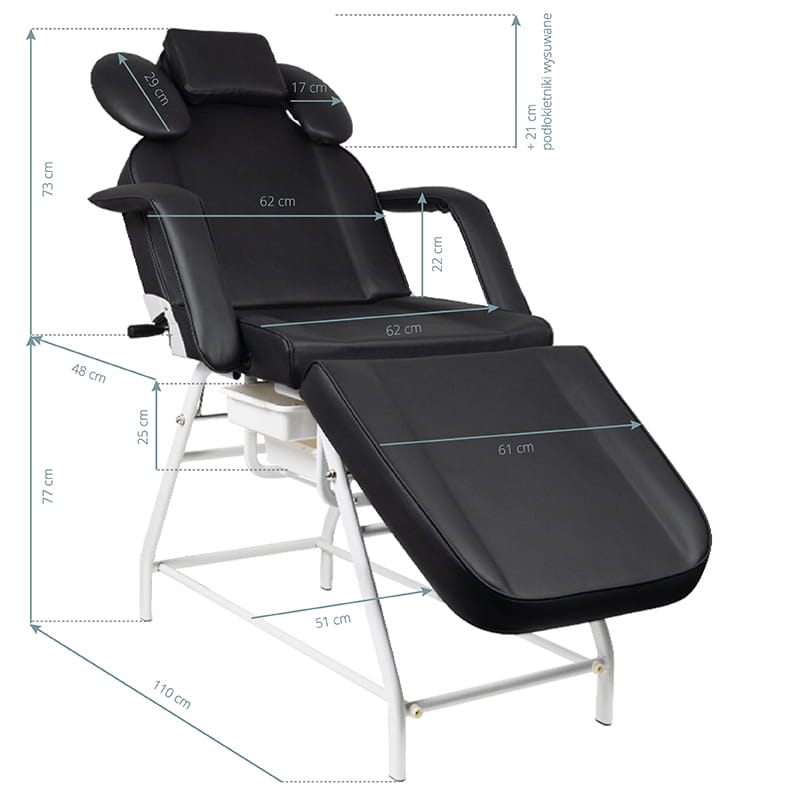 Fotel Ivette to nic innego jak komfort i wygoda podczas zabiegów kosmetycznych. Są to najważniejsze cechy warunkujące satysfakcję z perspektywy stylistek, ale również i klientek. Posiadanie takiego idealnie dopasowanego, spełniającego wszystkie oczekiwania fotela do przedłużania rzęs jest absolutną koniecznością. Fotel posiada ręczną regulację podnóżka, oparcia oraz podparcia rąk dla wykonywującego zabieg. Zastosowane podparcie rąk jest niezwykle praktycznym rozwiązaniem nie spotykamym w innych fotelach. Wyposażony w wygodną poduszkę dla klienta oraz podręczne kuwety na umieszczenie niezbędnych akcesoriów.