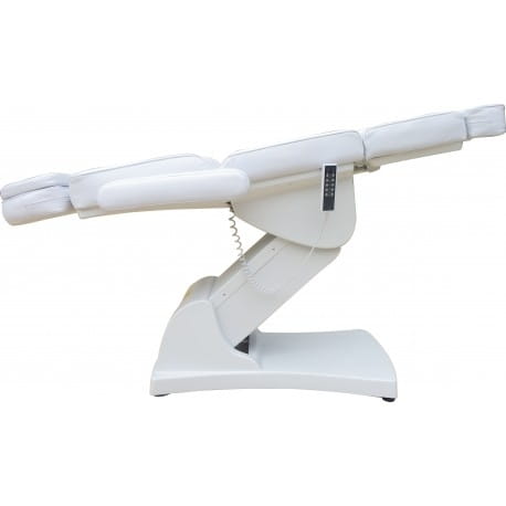 Fotel umożliwia elektryczne sterowanie wysokości, oparcia, lewego i prawego podnóżka osobno, oraz razem. Zapewnia komfort pacjentom oraz osobom wykonującym zabieg. Pilot umożliwia wygodną regulację fotela. Tapicerka wykonana jest z wysokiej jakości eko skóry. Fotel dostępny jest w kolorze białym.