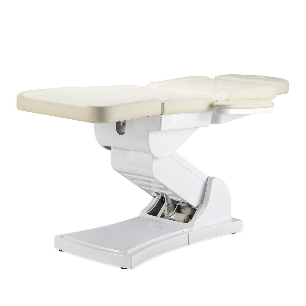 Fotel idealny do zabiegów na twarz, masażu oraz innych profesjonalnych procedur w gabinecie kosmetycznym. Posiada elektryczną regulację wysokości, kąta nachylenia oparcia i podnóżka, a także funkcję kołyski. Dodatkowo wyposażony jest w zagłówek z otworem na twarz. Jego elegancki i reprezentatywny wygląd doskonale pasuje do każdego gabinetu.