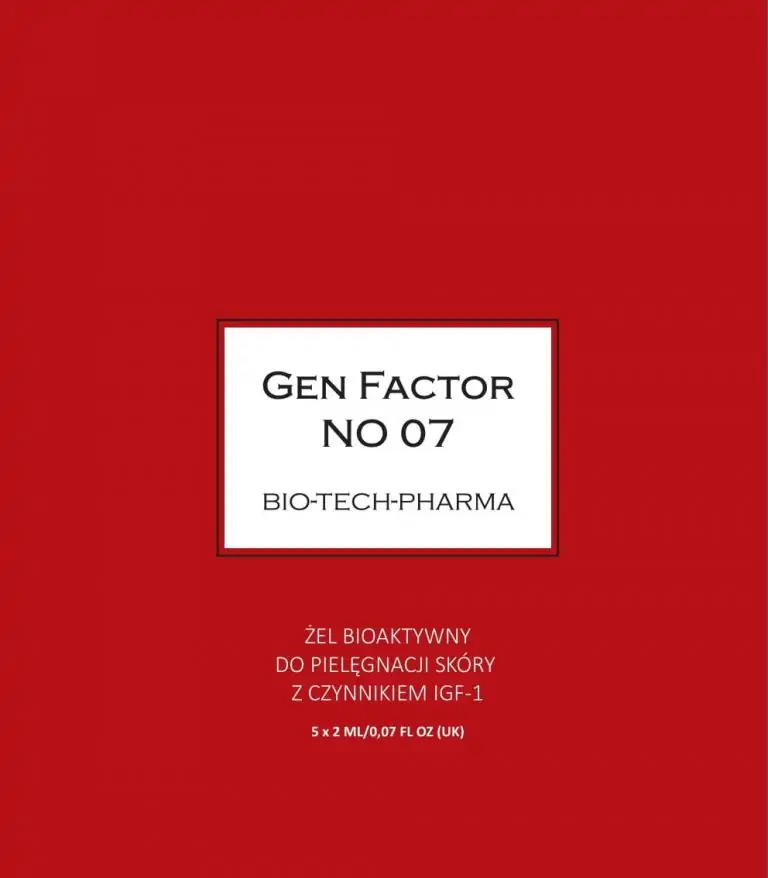 | Nazwa produktu | Gen Factor 07 Żel Bioaktywny do pielęgnacji skóry z czynnikiem IGF-1 5X2ML |