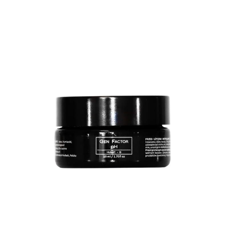 Gen Factor pH Humic jest inhibitorem enzymu zwanego hialuronidazą, dzięki czemu chronią przed degradacją kwasu hialuronowego obecnego w naszej skórze, uczestniczą w procesach detoksyfikacji, ułatwiając usuwanie toksyn z organizmu. Skóra ulega wygładzeniu, rozświetleniu i uelastycznieniu. Staje się gładka i przyjemna w dotyku. Wskazania do zabiegu: -płytkie zmarszczki, utrata jędrności skóry -szorstka skóra -cera tłusta, mieszana, łojotokowa -rozszerzone pory -nadmierne błyszczenie się skóry -zanieczyszczona skóra: krostki i zaskórniki Efekty działania: -oczyszczenie skóry -redukcja rozszerzonych porów, przebarwień -poprawa kolorytu i odświeżenie skóry -stymulacja mikrokrążenia -zwiększenie nawilżenia i odżywienia skóry -zwiększona absorbcja substancji aktywnych Sposób użycia: Nałóż niewielką ilość produktu na oczyszczoną i osuszoną skórę twarzy. Omijaj okolice oczu, ust i skrzydełek nosa oraz błony śluzowe (możesz zabezpieczyć okolicę ust, skrzydełek nosa przy pomocy wazeliny). Pozostaw na na skórze od 0 do 10 min, a następnie dokładnie przemyj produkt letnią wodą w celu neutralizacji kwasu. Przed pierwszym użyciem wykonaj próbę uczuleniową. Ta formuła zawiera bardzo wysokie stężenie wolnych kwasów. Zalecamy używanie tylko wtedy, gdy jesteś doświadczonym użytkownikiem produktów do eksfoliacji, a Twoja skóra nie jest wrażliwa.Produkt do stosowania wyłącznie przez profesjonalistów.
