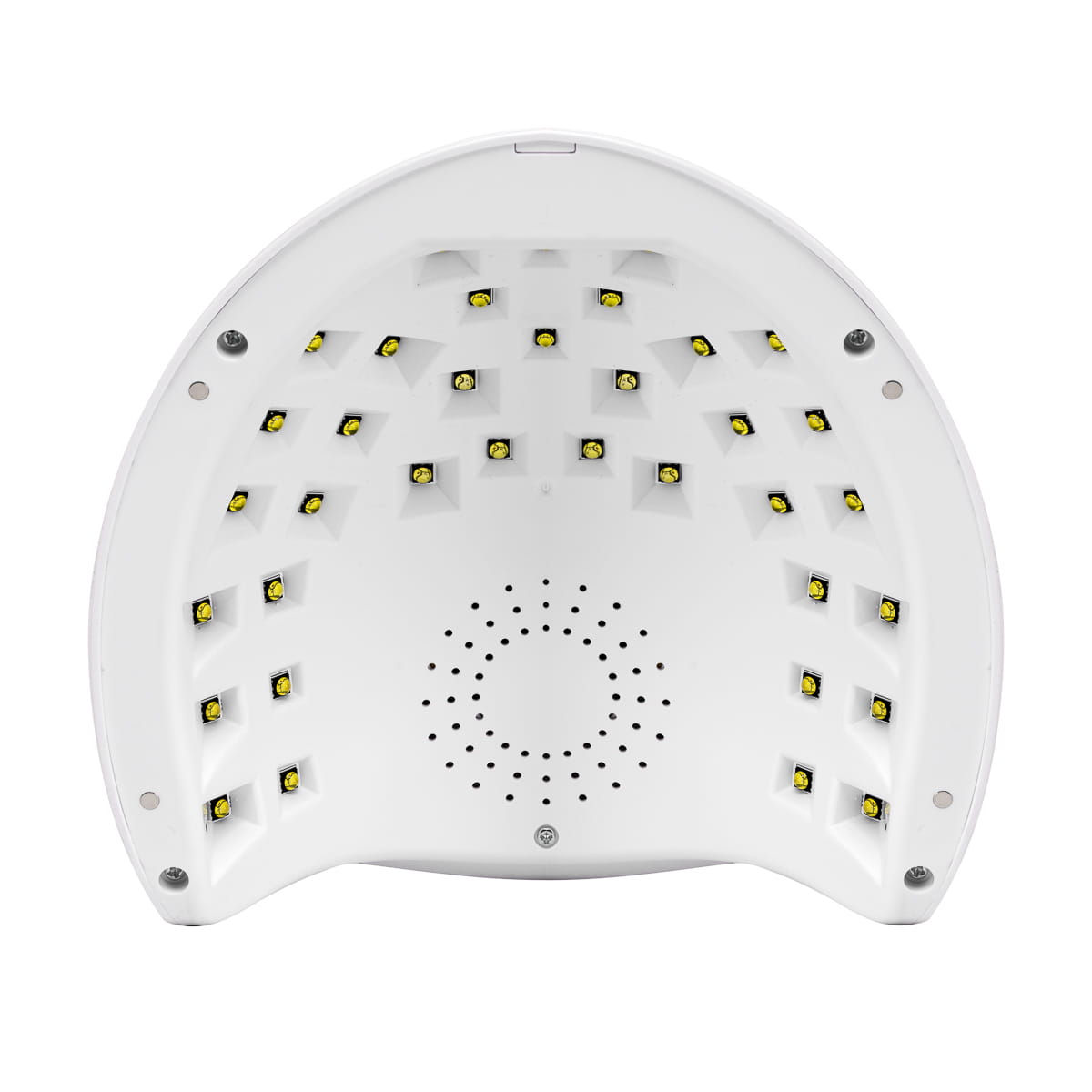 Bezcieniowa lampa z technologią Dual Led36 precyzyjnie rozmieszczonych diod LED zapewnia idealne utwardzenie żeli i lakierów hybrydowych, eliminując ryzyko powstania tzw. martwej strefy. Zamknięta konstrukcja, tzw. budka, umożliwia dokładniejsze i szybsze utrwalanie stylizacji paznokci. Dzięki technologii Dual LED diody emitują światło o dwóch długościach fali, co zmniejsza zmęczenie oczu i poszerza zakres działania urządzenia. Lustrzane dno równomiernie odbija światło, co przyspiesza i optymalizuje proces utwardzania na całej powierzchni paznokcia. Te rozwiązania ułatwiają prawidłowe utwardzenie nawet najbardziej wymagających produktów, pozwalając na dotarcie nawet do trudniej dostępnych miejsc na płytce paznokcia.