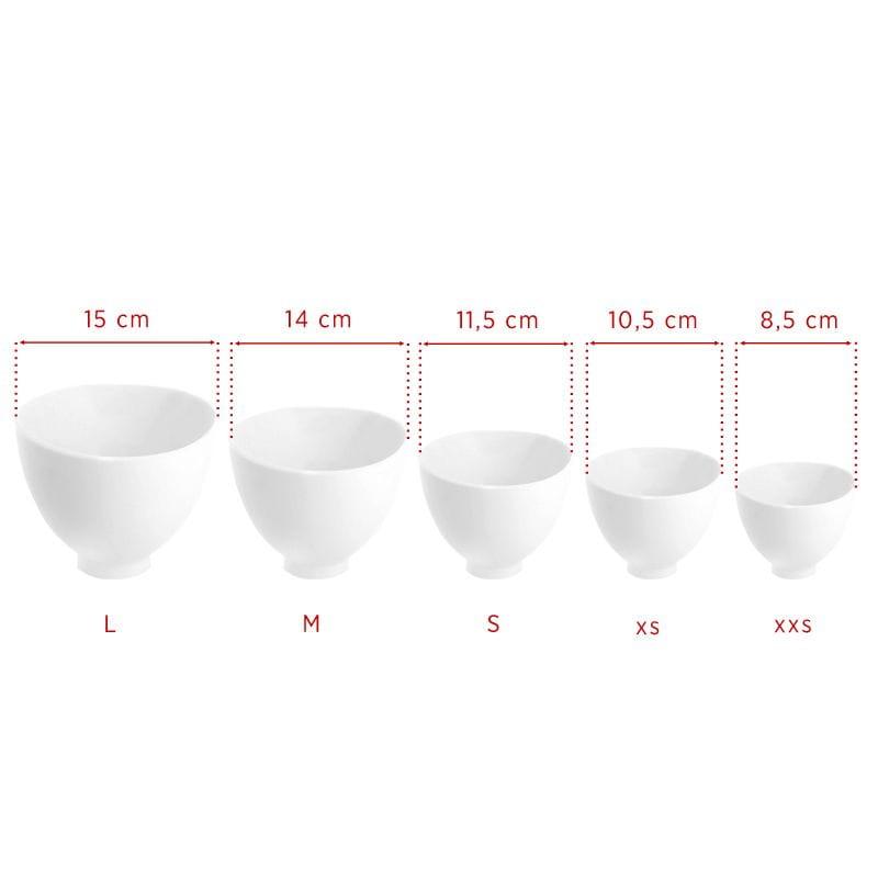 Miseczka silikonowa wielokrotnego użytku przeznaczona do rozrabiania masek algowych oraz innych preparatów kosmetycznych. Dostępna w trzech wygodnych rozmiarach - S/M/L