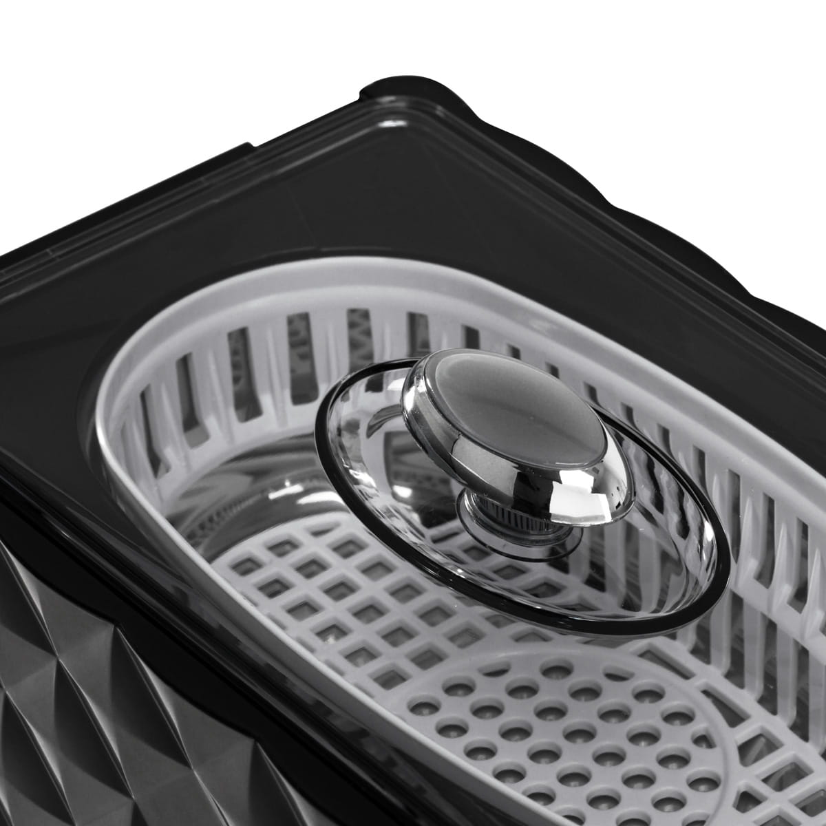 Elegancki design praktycznego urządzeniaNiewielkie gabaryty sprawiają, że ta myjka ultradźwiękowa jest bardzo prosta w transporcie, a dodatkowo nie zajmuje zbyt wiele miejsca w salonie. Estetyczna, zdobiona obudowa wykonana jest z tworzywa sztucznego w odcieniach czerni, a przejrzysta pokrywa pozwala na bieżąco obserwować przebieg procesu i nie utrudnia włączenia urządzenia, mimo że guzik ukryty jest pod nią. Pojemnik ma we wnętrzu oznaczenie maksymalnego napełnienia płynem (do 300 ml). Stabilność urządzenia zapewniają antypoślizgowe stopki.