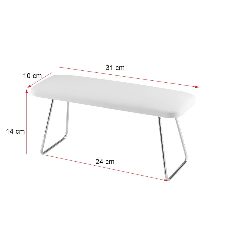 Profesjonalna podpórka do manicure #1 to klasyczna podpórka pod dłoń. Obicie wykonano z ekoskóry a nóżki z chromowanej stali. Odpowiednia wysokość podpórki zapewnia wygodną pozycję zarówno dla klienta, jak i dla stylistki. Stylistka nie garbi się i trzyma się prosto, dzięki czemu ból kręgosłupa zostanie zniwelowany.