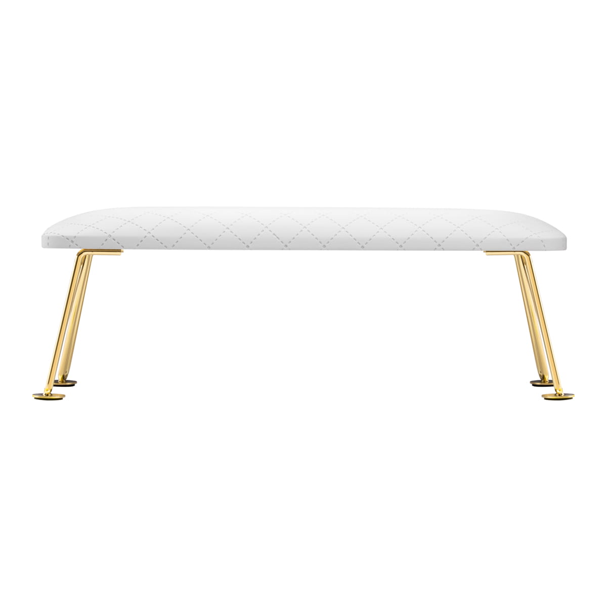 Profesjonalna podpórka do manicure 6M to klasyczna podpórka pod dłoń. Obicie wykonano z ekoskóry a nóżki z chromowanej stali w lolorze złotym. Odpowiednia wysokość podpórki zapewnia wygodną pozycję zarówno dla klienta, jak i dla stylistki. Stylistka nie garbi się i trzyma się prosto, dzięki czemu ból kręgosłupa zostanie zniwelowany.