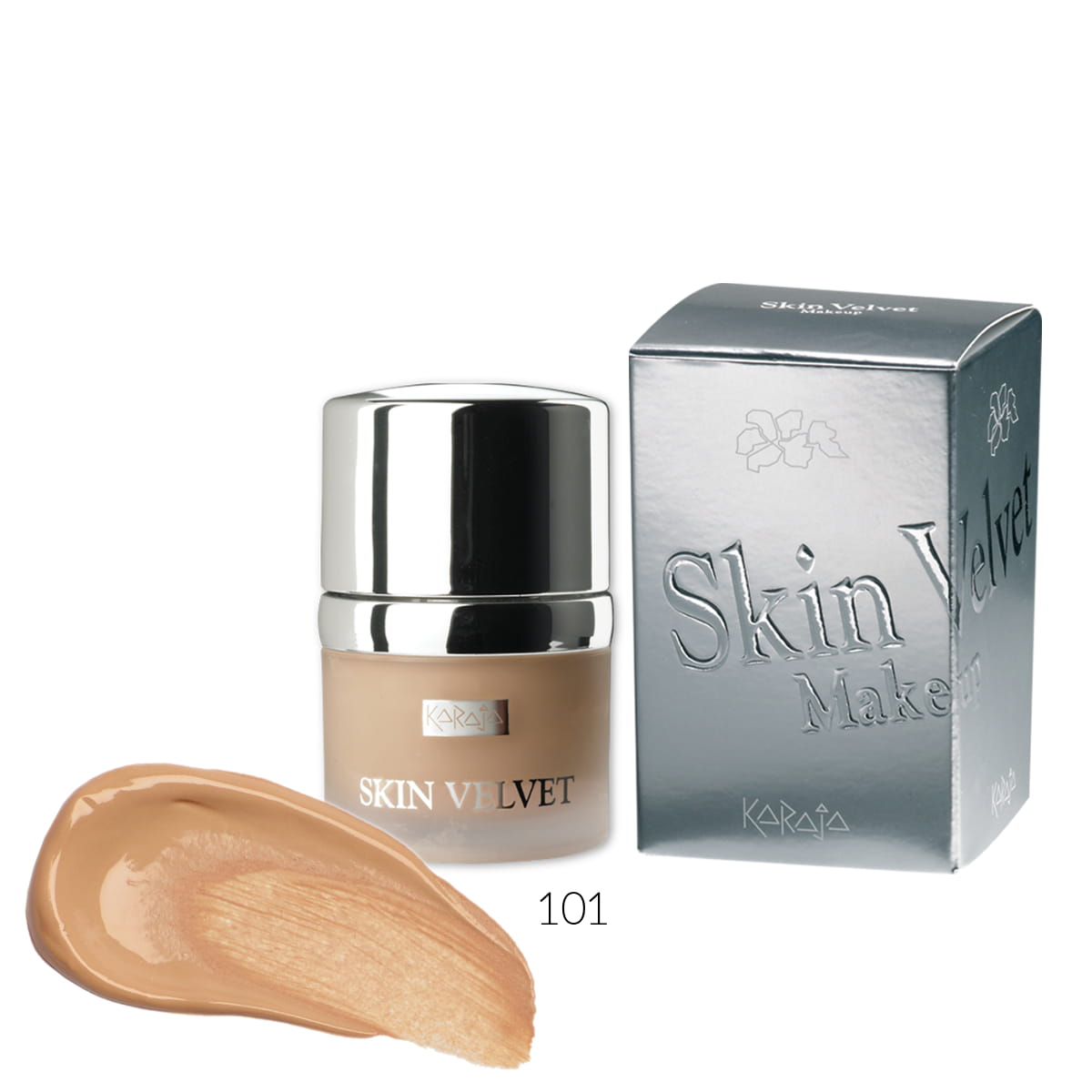 Podkład liftingujące Skin Velvet marki Karaja to podkład o kremowej konsystencji przeznaczony dla cery suchej oraz dojrzałej. Podkład posiada bogatą formułę wśród której znajduje się m.in.: wyciąg z Ginko biloba i ekstrakt z szyszek chmielu. Formuła ta wykazuje działanie silnie odżywcze i liftingujące dając efekt gładkiej cery nawet przez tydzień. Podkład Skin Velvet w widoczny sposób minimalizuje i wygładza zmarszczki mimiczne (rewitalizuje i podnosi zmęczoną skórę). Daje skórze uczucie komfortu i lekkości. Po aplikacji podkładu twarz staje się promienna, odżywiona i naprawiona.