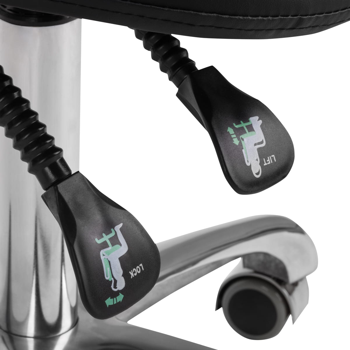 Taboret kosmetyczny model 1004 profilowany. Wygodny, ekskluzywny , stabilny taboret kosmetyczny z oparciem oraz profilowanym siedziskiem, na pięcioramiennej bardzo stabilnej podstawie podstawie. Regulowany w trzech płaszcztznach: - pełna regulacja kąta nachylenia siedziska - pełna regulacja wysokości oparcia - regulacja góra - dół