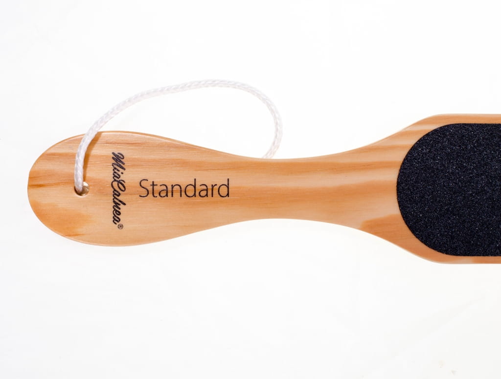 Tarka do stóp Standard posiada wszystkie cechy, które pozwalają zakwalifikować ją do tytułu „Produkt Idealny”, Wodoodporna - dwie powierzchnie lakieru zabezpieczają drewno przed wodą i wilgocią; Lekka i ergonomiczna – zapewnia wygodny i komfortowy zabieg pedicure; Duże powierzchnie ścierne o różnych gradacjach - gwarantują szybkie i skuteczne usunięcie zrogowaciałego naskórka; Sznurek do zawieszania - umożliwia wygodne przechowywanie tarki w łazience.