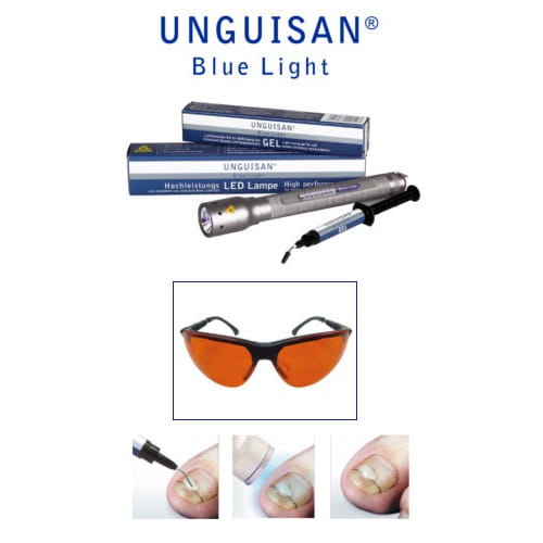 Obydwa żele Unguisan Blue Light utwardzane są za pomocą lampy w formie wygodnej i poręcznej latarki. Proces trwa zaledwie 20 sekund. Podczas zabiegu nie wytwarza się ciepło. Niebieskie światło LED jest bezpieczne dla skóry, jednakże podczas pracy zalecane jest noszenie specjalnych okularów chroniących oczy.