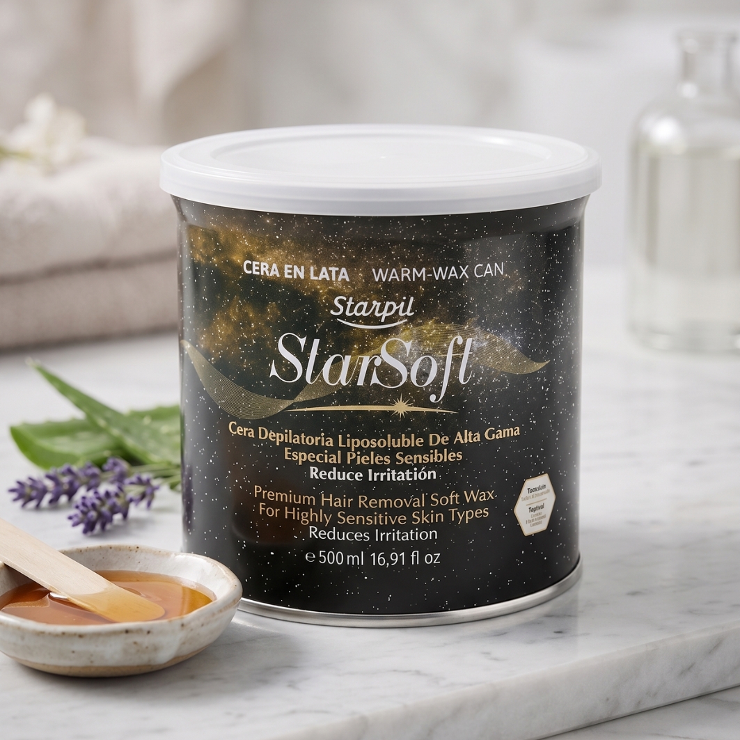 Wosk Star Soft w puszce to specjalistyczny produkt do depilacji metodą paskową, dedykowany osobom o bardzo niskim progu bólu oraz cerze reaktywnej. Posiada innowacyjny aktywny składnik hamujący pieczenie, dzięki czemu zabieg staje się zdecydowanie mniej bolesny i łagodniejszy w odczuciach.